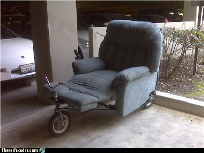 Since I got in my car accident, I can't run up the field to scold the dogs so he built me a chair so I don't have to run. I just peddle my way up the field.